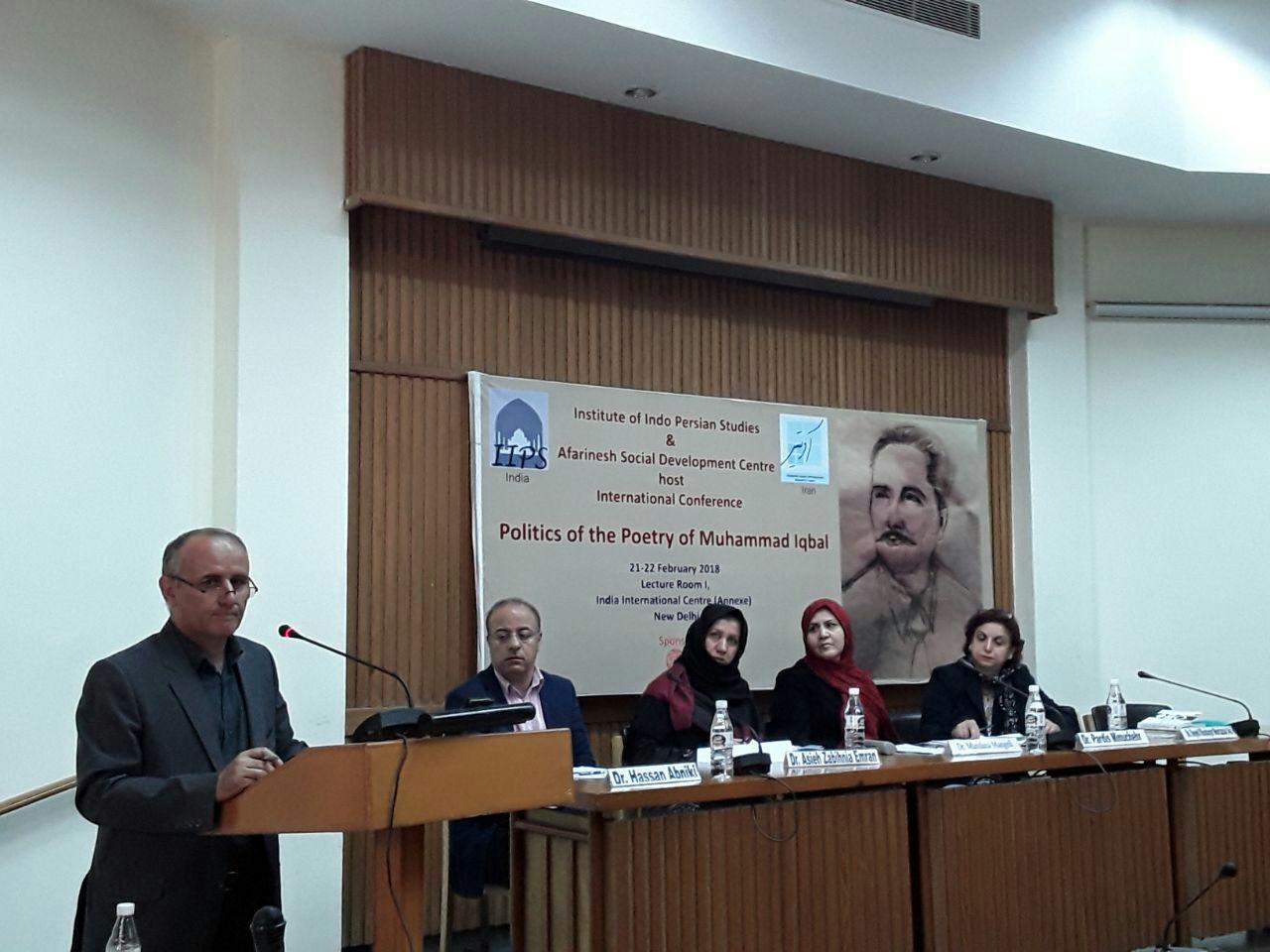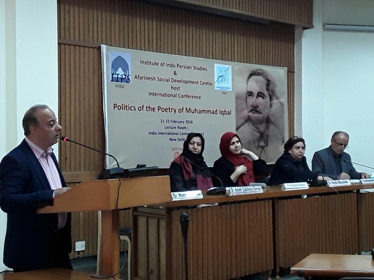 همایش بین المللی «سیاست شعری علامه محمد اقبال لاهوری» با همکاری مرکز پژوهشی توسعه اجتماعی آفرینش و مؤسسه مطالعات فارسی هند، در تاریخ دوم و سوم اسفند ۱۳۹۶ مصادف با ۲۱ و ۲۲ فوریه در دهلی نو برگزار شد. هر دو موسسه خصوصی و غیردولتی هستند که در زمینه علوم انسانی با تمرکز بر مباحث میان رشته ای علوم فعالیت می کنند. در این همایش نیز به افکار و آثار اقبال لاهوری از منظر رشته های گوناگون بویژه رشته های زبان و ادبیات فارسی و اردو و علوم سیاسی و فلسفه پرداخته شد.